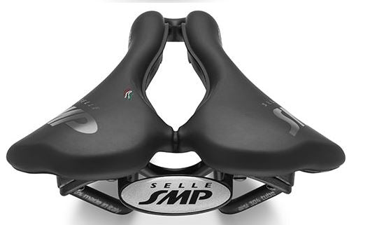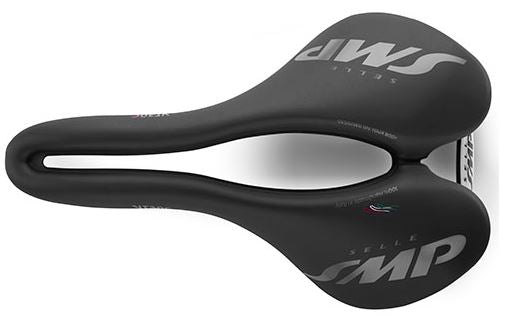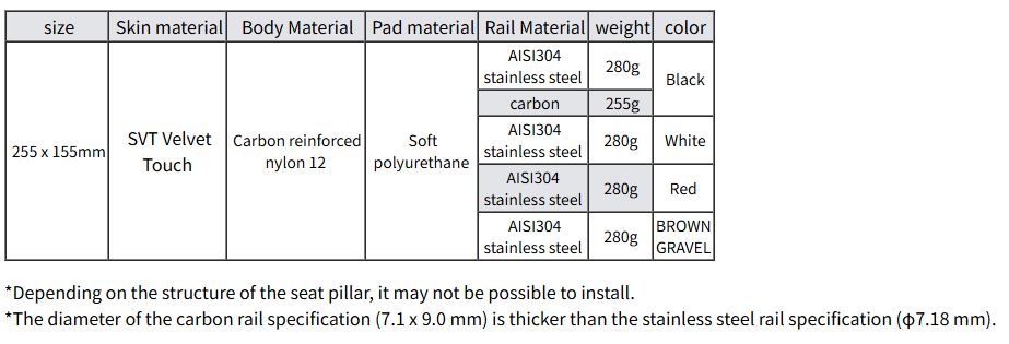 While incorporating the SMP saddle's signature features, such as a large opening to avoid pressure on the private parts and a unique, lowered nose design, it now features a flat seat and a tail design with a truncated rear end. This allows for